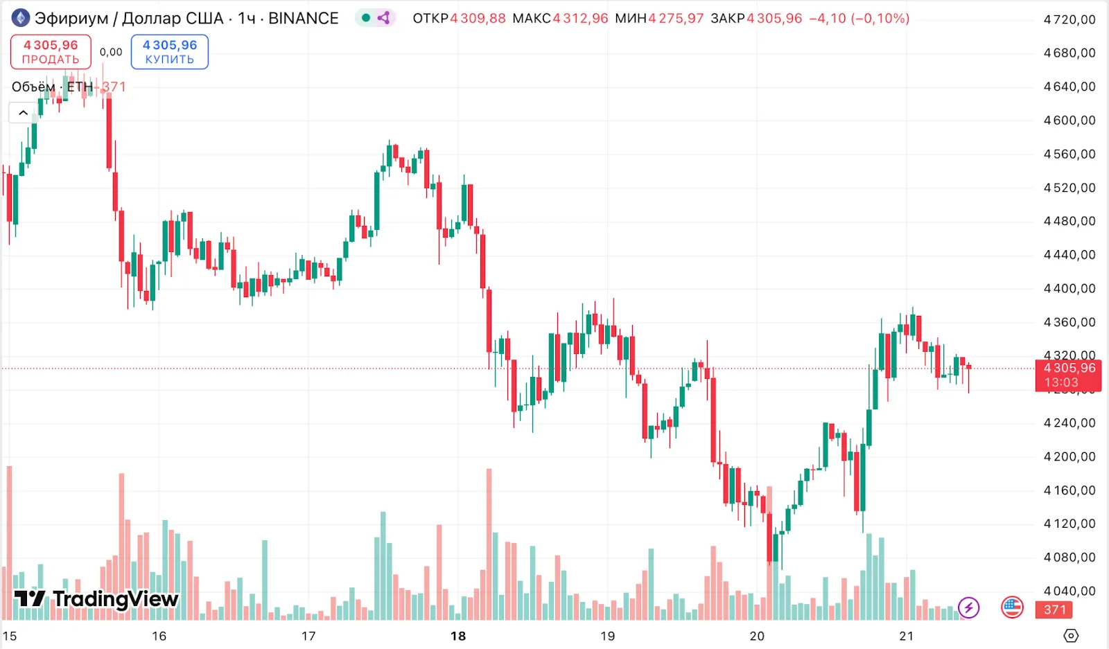 На момент написания Ethereum торгуется по $4305. За последние сутки котировки актива выросли на 2,6%, согласно CoinGecko.