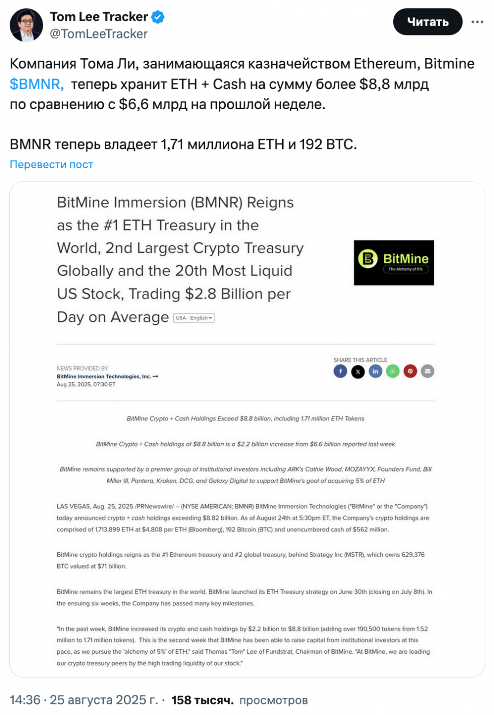 Источник: Tom Lee Tracker.