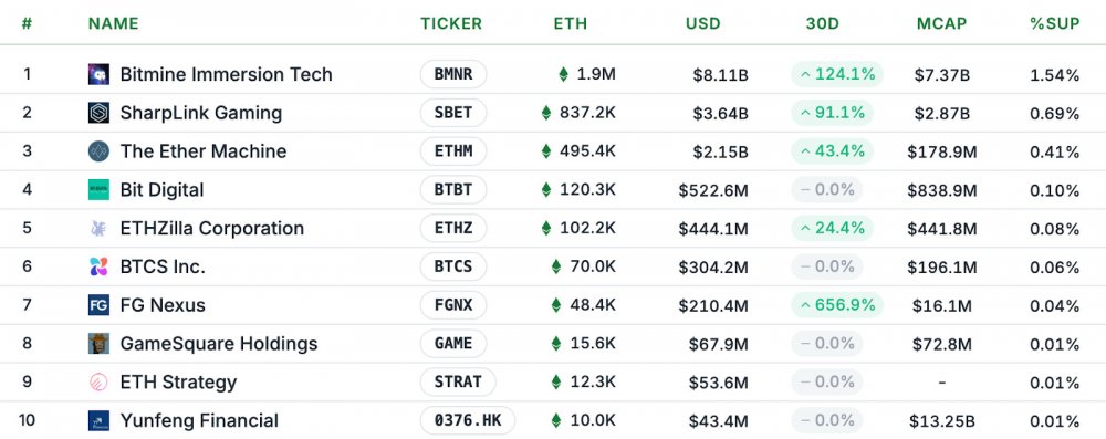Sharplink Gaming является вторым по величине публичным держателем ETH с капиталом в 3,6 млрд долларов США, уступая только BitMine Immersion Technologies, которой принадлежит 8,03 млрд долларов США.