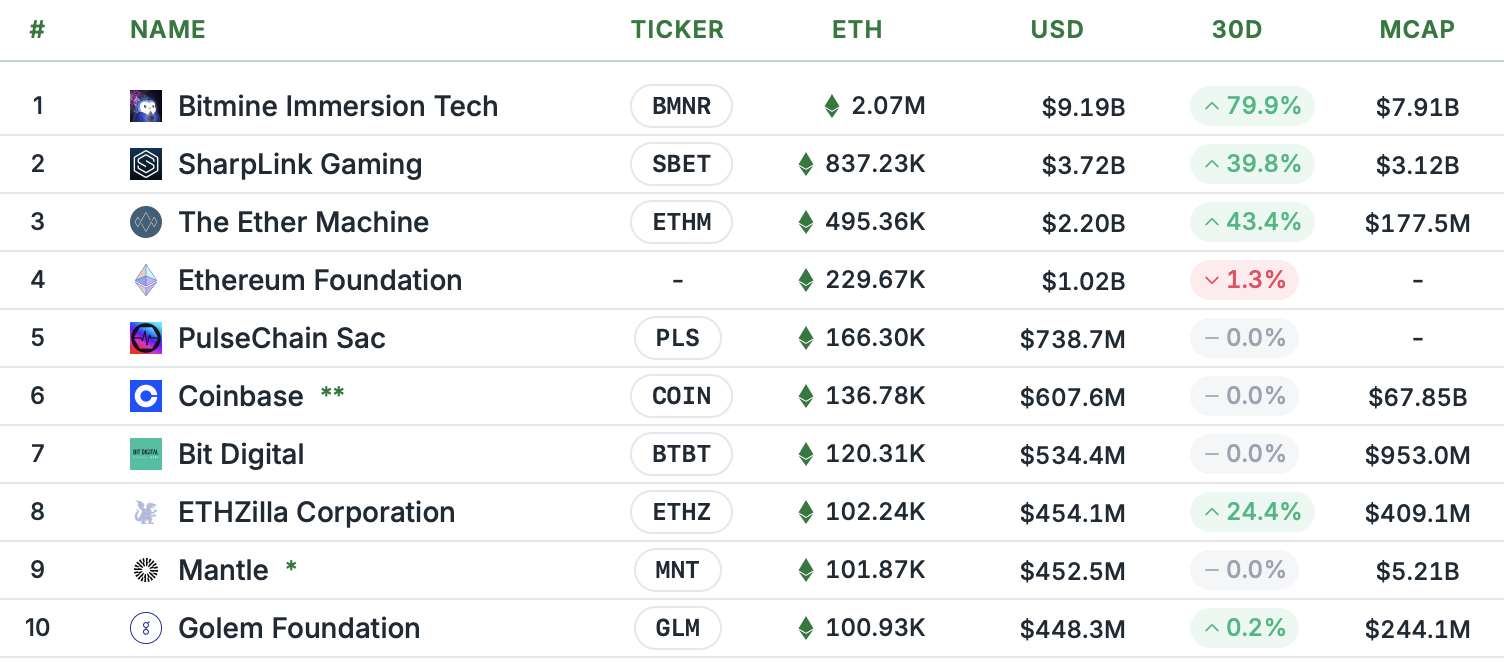 Лидерство среди корпоративных держателей Ethereum