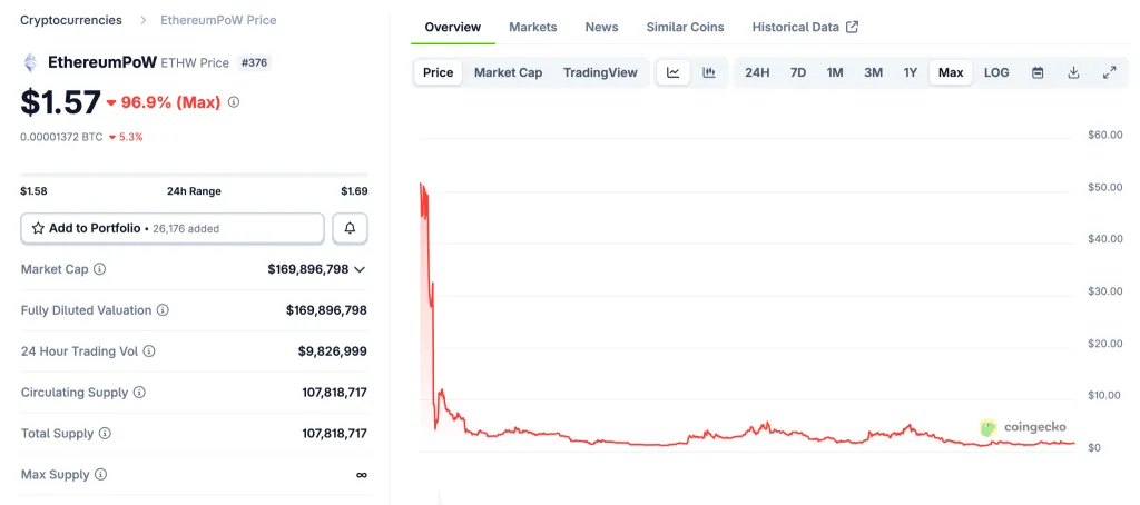 ETHW — born from refusing the merge, now just another ghost chain no one asked for.