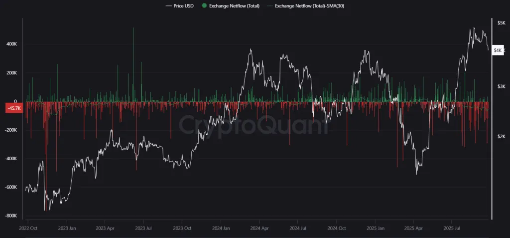 Главной причиной оттока стало активное накопление Ethereum крупными держателями и инвестиционными фондами.