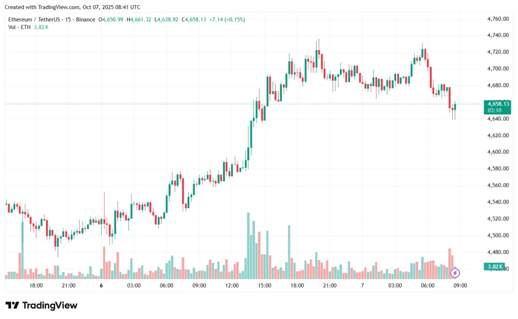 На момент написания монета торгуется по $4655. Курс альткоина приблизился к историческому максимуму — до него осталось 5,8%, согласно CoinGecko.