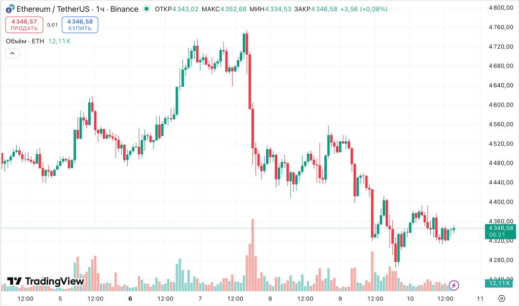 Инвестор Тед Пиллоуз отметил, что Ethereum отскочил от уровня поддержки $4250. Если криптовалюте удастся удержать этот уровень, ее ожидает восстановление. В противном случае цена может скорректироваться к $4000.