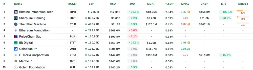 Сейчас под управлением BitMine находится свыше 2,8 млн ETH на сумму около $12,4 млрд. Компания является крупнейшим держателем актива и второй по величине DAT после Strategy.