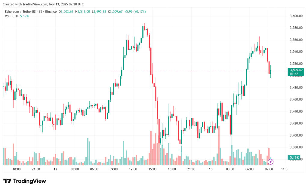 На момент написания Ethereum торгуется по ~$3500, прибавив 1% за сутки.