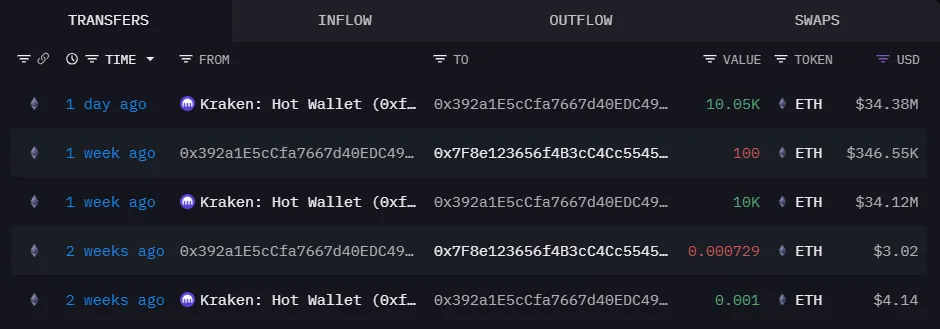 За последнюю неделю крупные инвесторы приобрели Ethereum более чем на $360 млн. На фоне снижения цены один из пользователей дважды купил по 10 000 ETH.