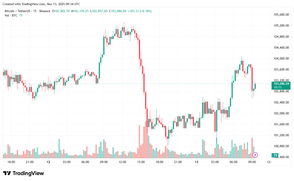Курс биткоина составляет ~$103 000 (-1,4% за 24 часа).