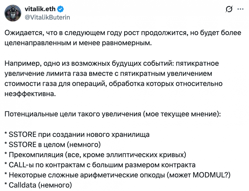 «Всего через год после того, как сообщество начало добиваться повышения лимита газа, Ethereum работает с лимитом в 60 млн газа на блок. Это двукратное увеличение за один год — и это только начало», — написал Варштэттер в X.