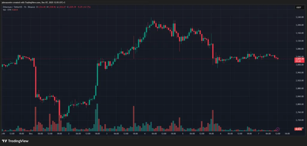 Сейчас ETH торгуется около $3000, за сутки почти не изменившись в цене.