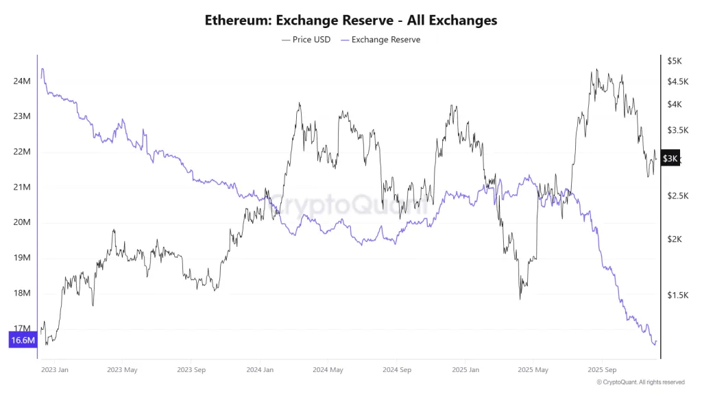 Биржевые запасы ETH упали до рекордно низкого уровня