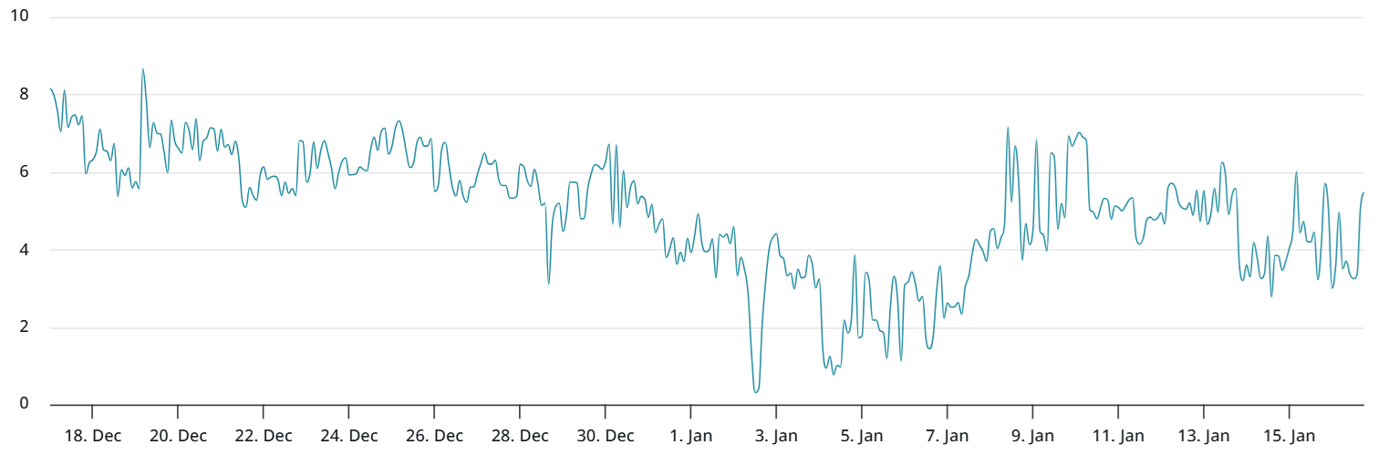 16 января месячные ETH-фьючерсы торговались с годовой премией в 4% относительно спотовых рынков. Уровни ниже 5% обычно считаются медвежьими, так как продавцы часто требуют премию за более длительный срок расчета.