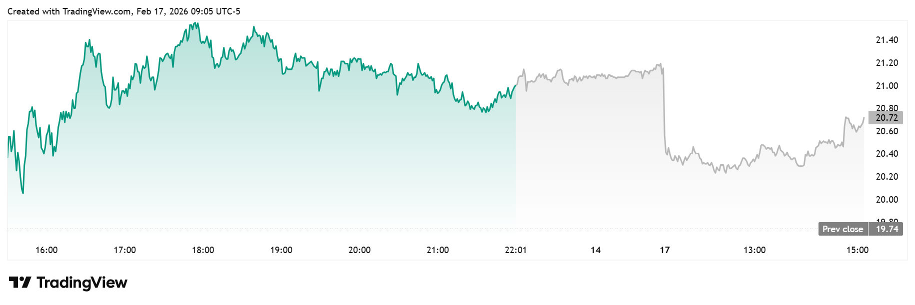 На предрыночных торгах акции BMNR стоили 20,40 доллара, снизившись на 2,67%, или на 0,56 доллара, за 24 часа. Предыдущая цена закрытия составляла 19,74 доллара, а дневной диапазон колебаний составил от 20,04 до 21,60 доллара. Рыночная капитализация этой криптовалютной компании составляет 9,53 миллиарда долларов.