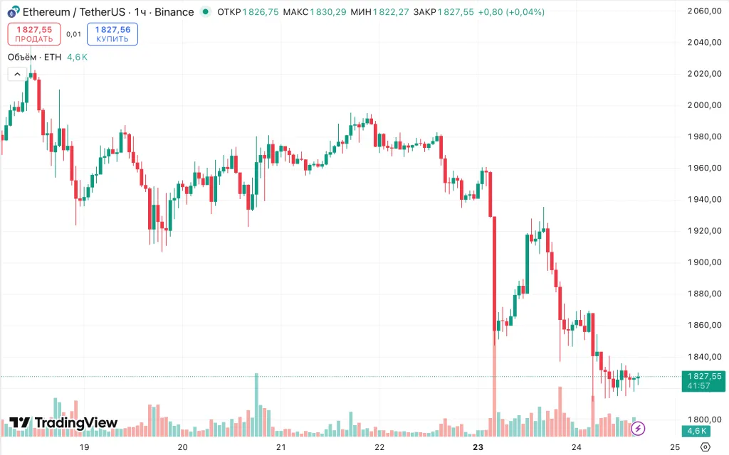 Продажи происходят на фоне глубокой коррекции Ethereum: за последний месяц актив просел 38% и торгуется около $1800. Это более чем на 60% ниже исторического максимума, достигнутого в августе 2025 года.