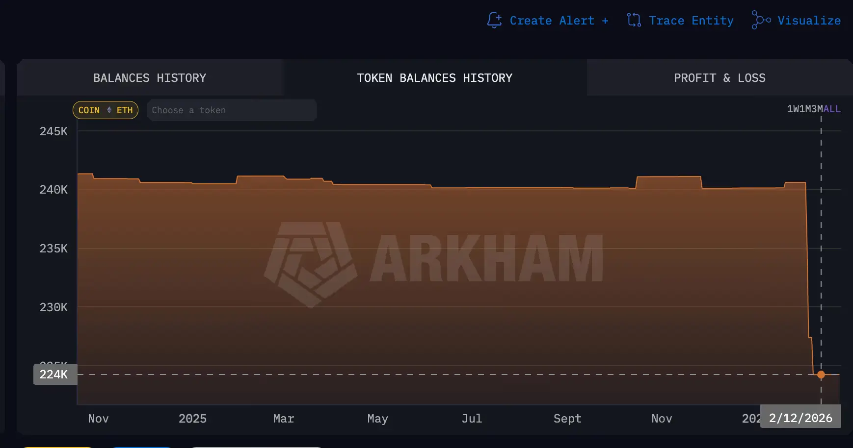 По данным Arkham Intelligence, на начало февраля в криптокошельках Бутерина находилось около 241 000 $ETH. Сейчас этот показатель составляет 224 000 $ETH из‑за ряда выводов средств в течение месяца — в том числе $6,6 млн за три дня в начале февраля и еще около $7 млн только за последние три дня.