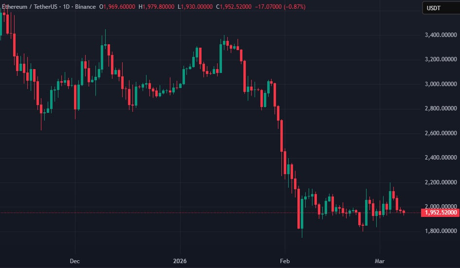 Отметим, на момент написания цена Ethereum составляет около $1950: