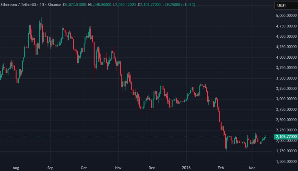 На момент написания цена Ethereum составляет около $2100: