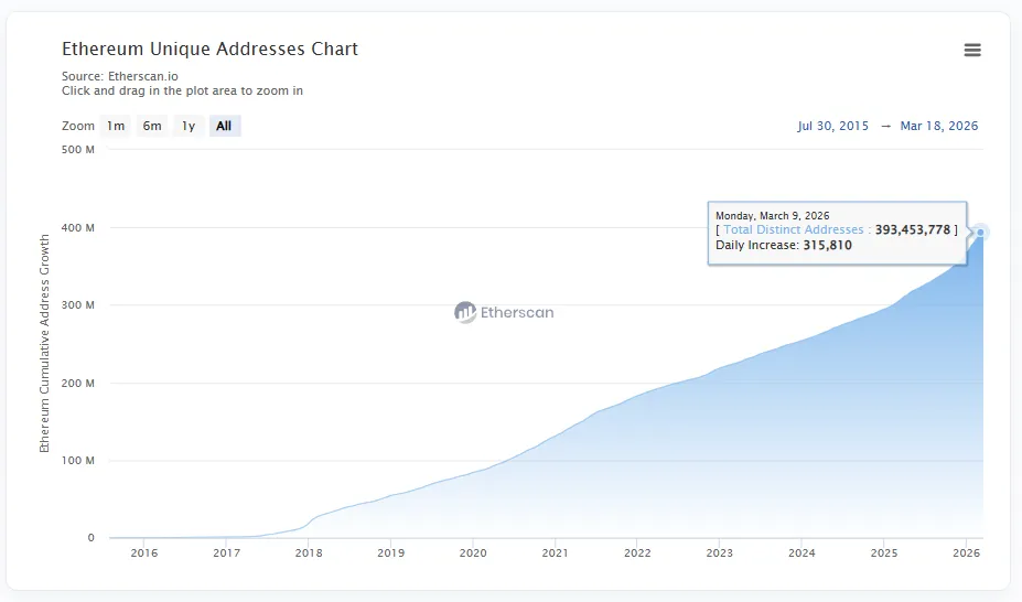 Количество уникальных кошельков в сети почти достигло 400 млн.
