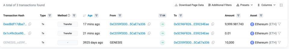 По данным аналитиков, адрес «0xCD5…7a336» получил эфиры 30 июля 2015 года в рамках участия в ICO. Тогда их стоимость составляла $3100. По текущему курсу 10 000 $ETH оцениваются примерно в $23,1 млн — активы выросли в цене в 7465 раз. Причина перемещения средств неизвестна, но обычно подобные переводы предшествуют продаже токенов.