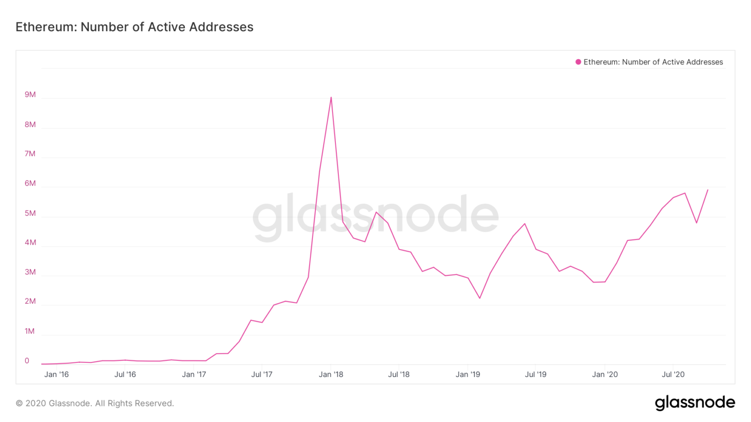 По данным Glassnode, общее число пользователей сети Ethereum в октябре составило 5,9 млн.