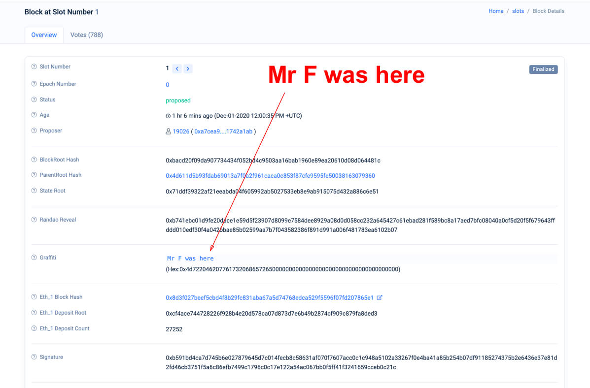 Вчера состоялось важное событие — запуск Beacon Chain Ethereum 2.0. Это нулевая фаза апгрейда сети криптовалюты, которая прошла успешно. Впрочем, не без странностей: в первом блоке Ethereum 2.0 было обнаружено сообщение, которое может показаться бессмысленным на первый взгляд. Речь идёт о фразе «Mr F was here», которую можно перевести как «Мистер Ф был здесь». Что это значит и о ком идёт речь?