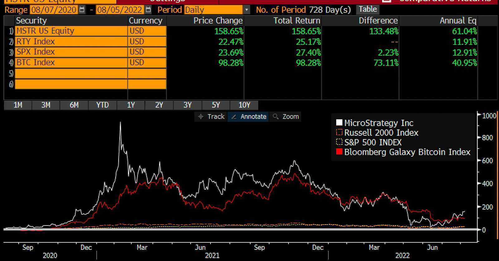 Действительно, производительность акций была отмечена старшим аналитиком биржевого фонда (ETF) Эриком Балчунасом в твите за 8 августа, написавшим, что компания с лёгкостью победила малые и крупные компании, включая сам биткоин.