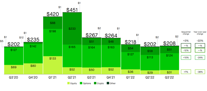 Выручка Robinhood Crypto от торгов за III квартал обвалилась на 12%. Об этом финтех-брокер сообщил в пресс-релизе по финансовой отчетности за прошедший квартал.