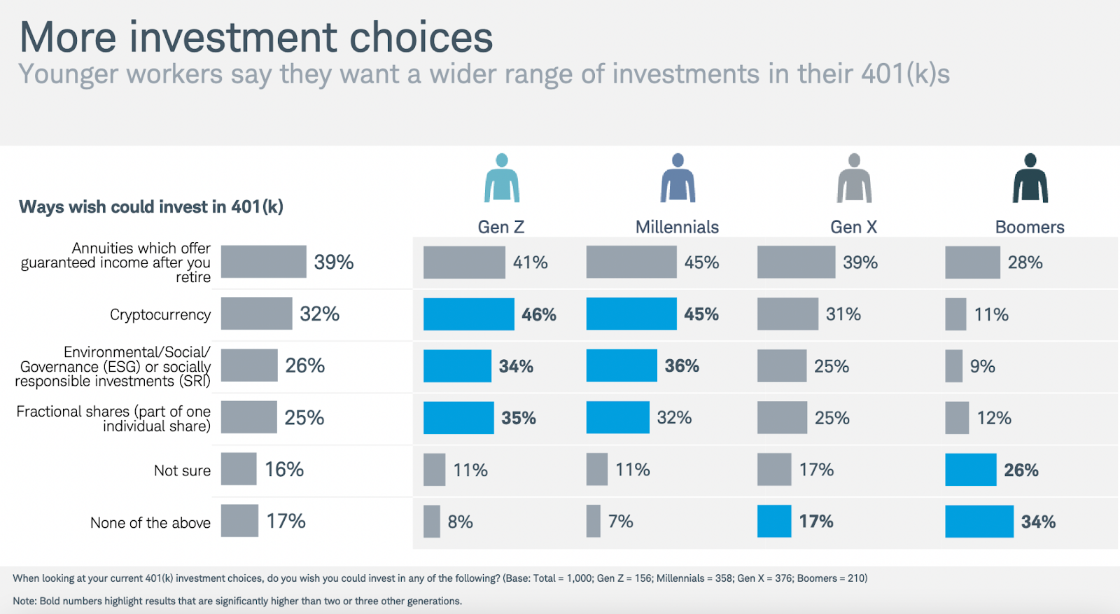 Интерес к криптовалютам в качестве сохранения пенсионных сбережений проявляют 46% представителей поколения “зуммеров” и 45% “миллениалов”, показал опрос брокера Charles Schwab. По его данным, уже владеют цифровыми активами 43% и 47% респондентов из соответствующих групп.