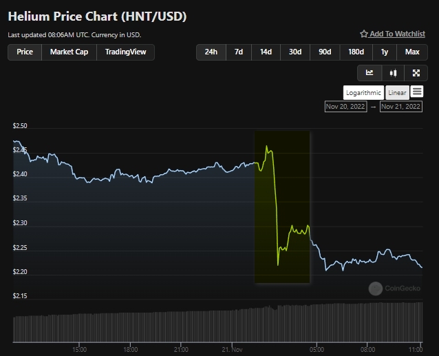 В октябре Binance провела делистинг нескольких пар с HNT. В Forbes отметили, что незадолго до этого опубликовано расследование о получении основателями проекта «необоснованных выплат на миллионы долларов» после запуска токена. Helium привлек $250 млн от Andreessen Horowitz, Tiger Global и других инвесторов, однако доход сети за 2021 год составил всего $92 000.
