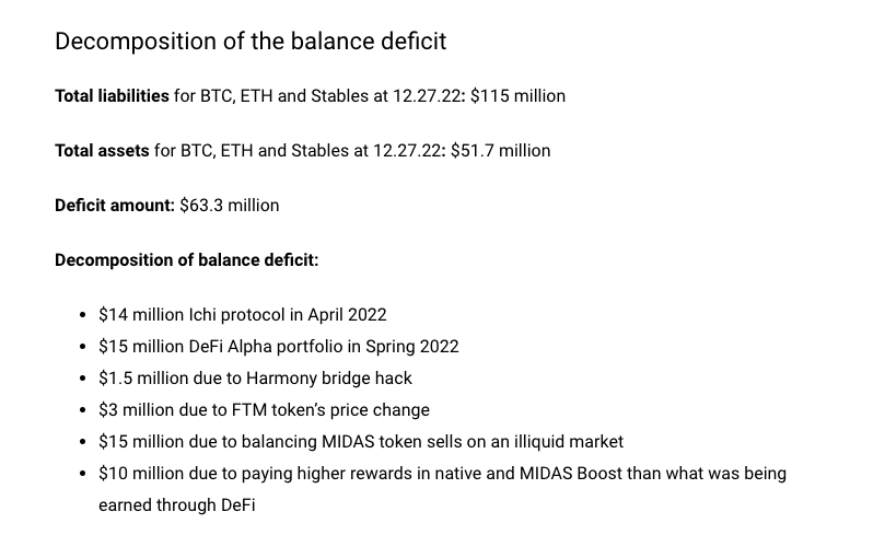 «Весной 2022 года портфель децентрализованных финансов Midas понес совокупный убыток в размере $50 млн (20% от AUM в $250 млн)», — говорится в сообщении.