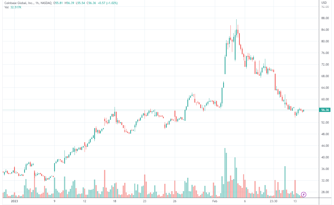 Котировки криптокомпании обвалились с начала месяца на фоне слухов о претензиях SEC к программе стейкинга Coinbase.