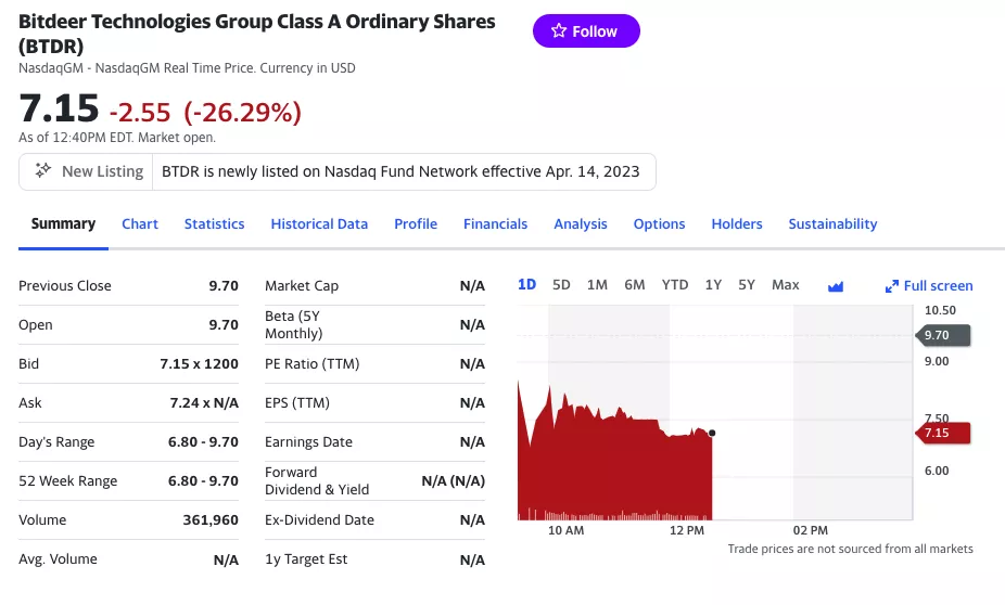 14 апреля акции объединенной фирмы под названием Bitdeer Technologies Group начали торговаться на бирже Nasdaq под тикером BTDR. На момент написания их стоимость держится выше $7.