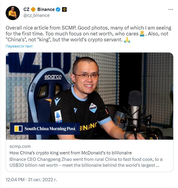 Соучредитель и генеральный директор крупнейшей в мире криптовалютной биржи Binance Чанпен Чжао в очередной раз поставил под сомнение оценки его личного состояния.