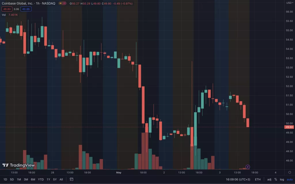 Часовой график COIN/USD биржи NASDAQ. Данные: TradingView.