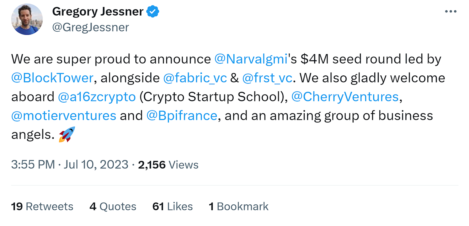 Стартап Narval объявил о привлечении $4 млн в ходе посевного раунда финансирования под руководством BlockTower VC.