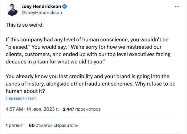Участники криптосообщества негативно восприняли реакцию платформы. Один из пользователей Twitter назвал ее странной: