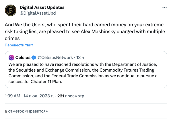 Представители Celsius заявили, что рады достижению соглашений с Минюстом, SEC, CFTC и FTC. Компания также подчеркнула приверженность «постоянному сотрудничеству с регулирующими и государственными органами».