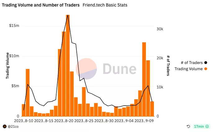 Вероятно, росту активности способствовал и приток новых участников не из криптоиндустрии. За последние несколько недель Friend.Tech заинтересовались YouTube-блогеры и контентмейкеры с OnlyFans.