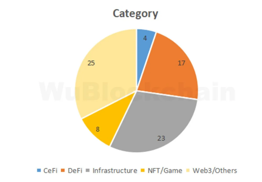 Популярный криптоаналитик WuBlockchain опубликовал отчет о вложениях венчурных компаний в крипту за сентябрь. В отчете использовалась статистика RootData, которая показала, что за месяц венчурные инвесторы вложили деньги в 77 проектов.