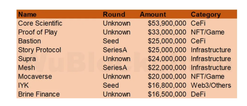 Крупнейшая инвестиционная сделка произошла с участием Bitmain: компания предоставила 27 000 майнеров S19J XP обанкротившейся майнера Core Scientific. За это в Bitmain получили $231 млн наличными и $539 млн в виде акций Core Scientific.