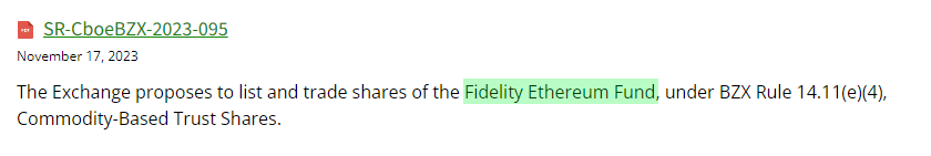 Заявка Fidelity на запуск спотового ETF на Эфириум