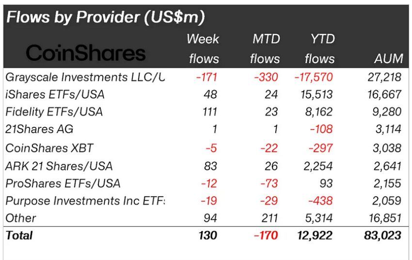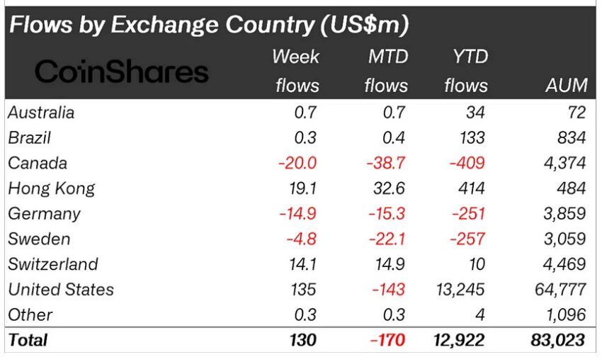 За прошлую неделю в инвестиционные продукты на базе цифровых активов вложили $130 млн