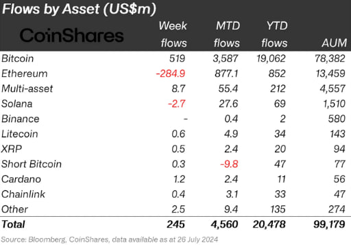 - В период с 22 по 26 июля зафиксирован приток средств в размере $245 млн.
