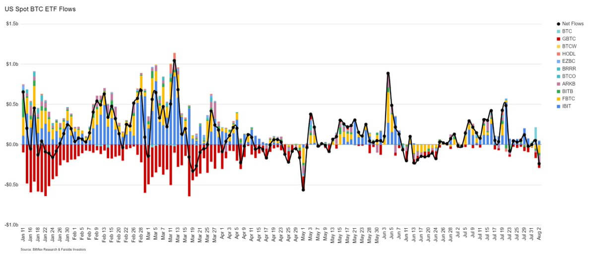 Результат недели также оказался в минусе. Объём капитала в Биткоин-ETF снизился на 82.3 миллиона.