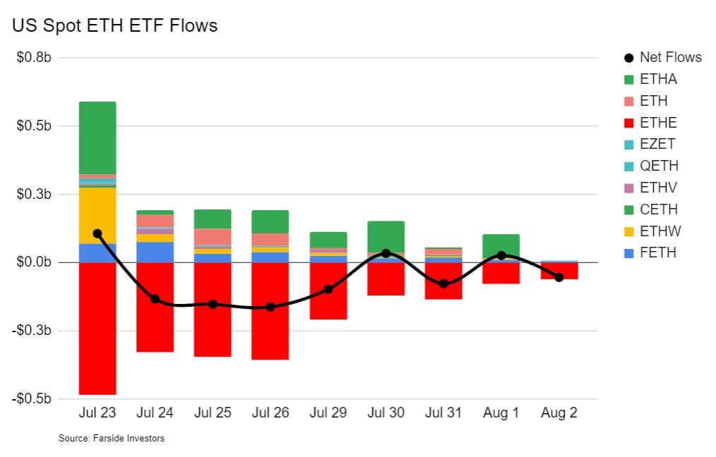 ETF на основе Эфириума столкнулись с оттоком на уровне 54.3 миллиона.