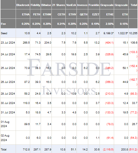 FETH от Fidelity и EZET от Franklin были единственными ETF, зафиксировавшими приток средств на уровне $6 млн и $1,1 млн соответственно.
