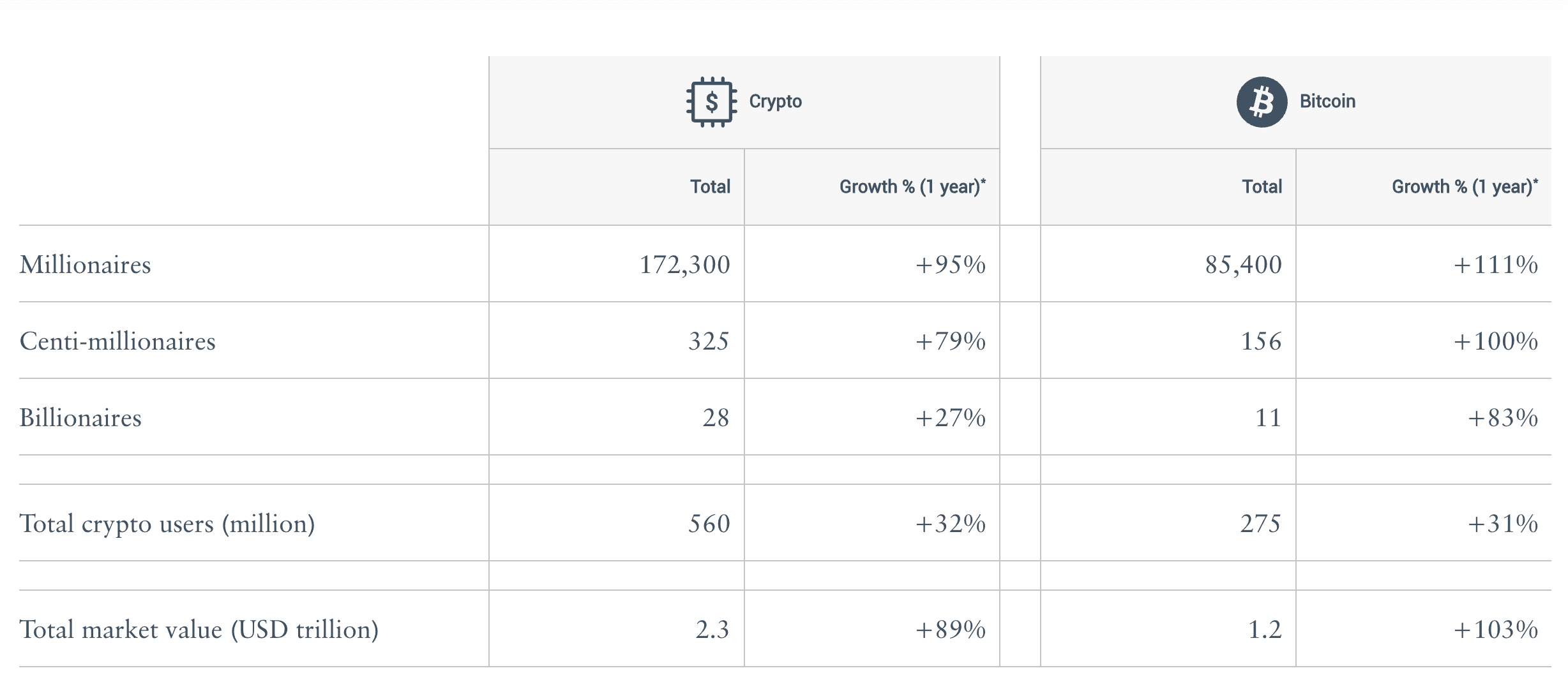 В мире насчитывается 172 300 человек, владеющих криптовалютными активами на сумму более $1 млн. Это следует из отчета Crypto Wealth Report 2024, опубликованного организацией Henley & Partners.