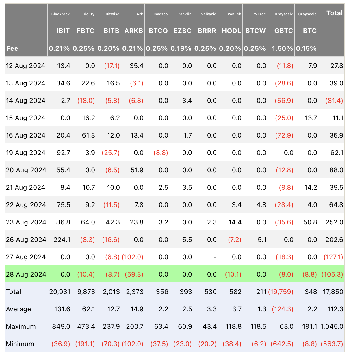 Bitwise’s BITB, мини-траст на биткоин от Grayscale и GBTC тоже оказались в минусе примерно на $8 млн каждый. А вот IBIT от BlackRock, самый крупный спот-ETF на биткоин по чистым активам, и еще пять биткоин-ETF смогли удержаться на нуле. Неужели это признак стабильности или просто затишье перед новой волной оттоков?