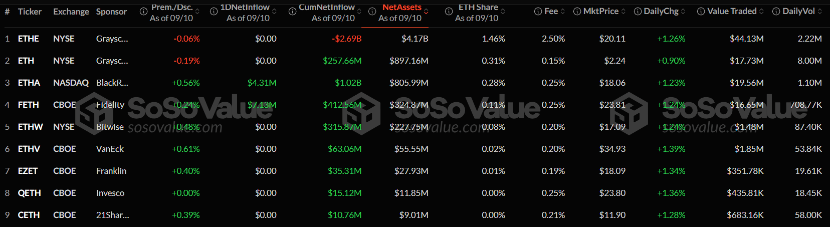 - Торговый день 10 сентября спотовые биткоин- и Ethereum-ETF закрыли с притоком средств.