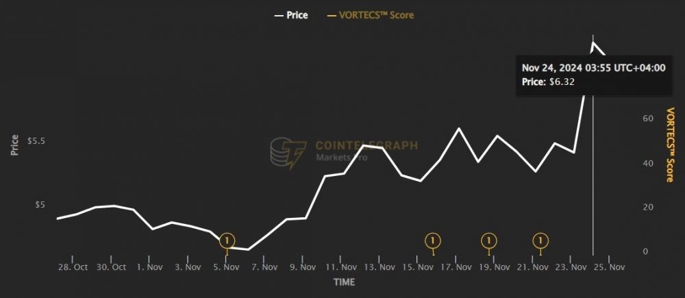 Telegram также владеет «значительным» количеством TON и подвержен изменениям на рынках TON. Во время ареста основателя Павла Дурова цена TON упала на 25%, снизившись до $5,24. Однако актив восстановился, и последовало более широкое ралли на рынке криптовалют. 24 ноября криптоактив достиг максимума в $6,32.